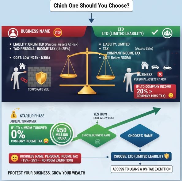 In the Nigerian economy today, choosing between a Business Name and a Private Limited Company (LTD) is no longer just a matter of “finding a name.” It is a strategic decision that determines how much of your personal life you are willing to bet on your business success.